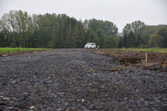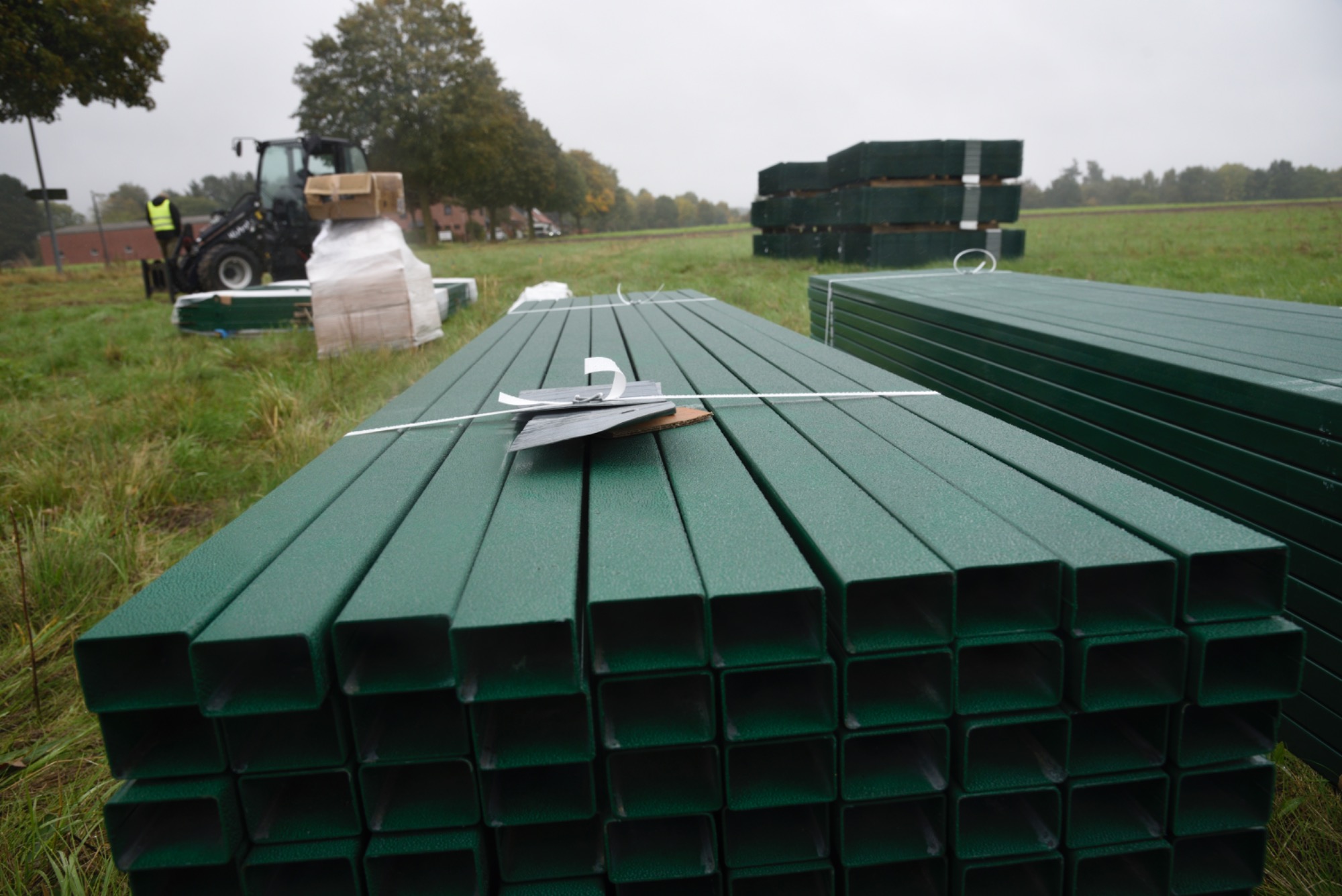 Die Ermittlung von 600 Messpunkten ist erledigt. Das Zaunmaterial ist angeliefert. Die Zuwegung als Schotterweg ist bereits fertiggestellt.