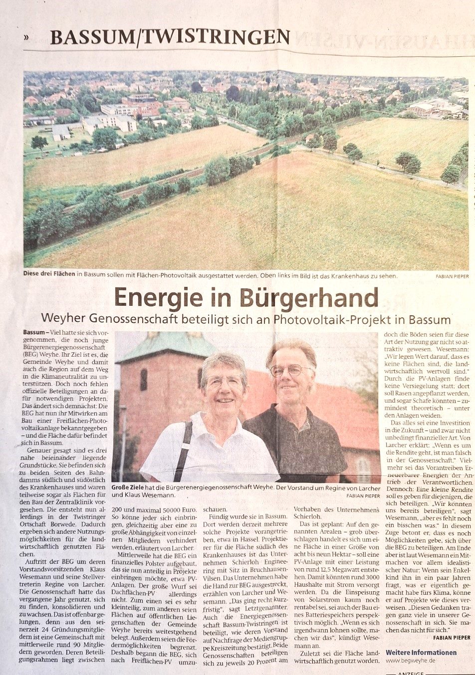Unser erstes Projekt: eine Beteiligung an einer Flächenphotovoltaik-Anlage in Bassum.